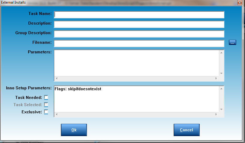 Task Needed: Indicates if there is a task needed for this entry. If a task is not used then the install will execute every time your installation is run.