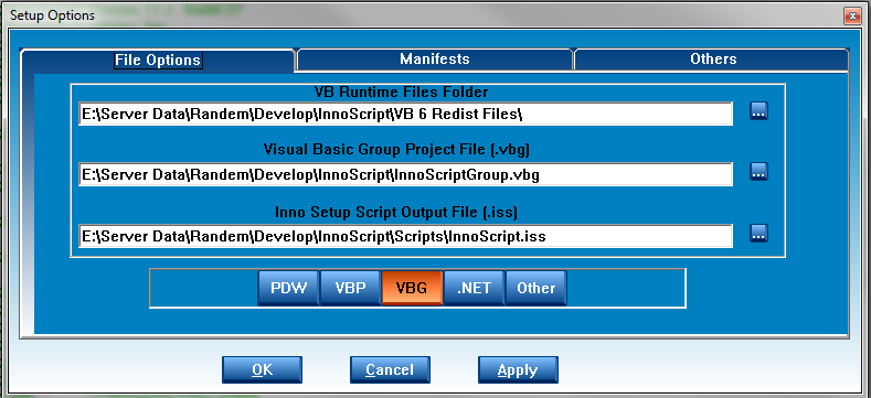 This selection defaults to the folder where the universal VB Runtime files are stored when InnoScript is installed and should be used. However if you decide to change the folder the files you supply may not work.